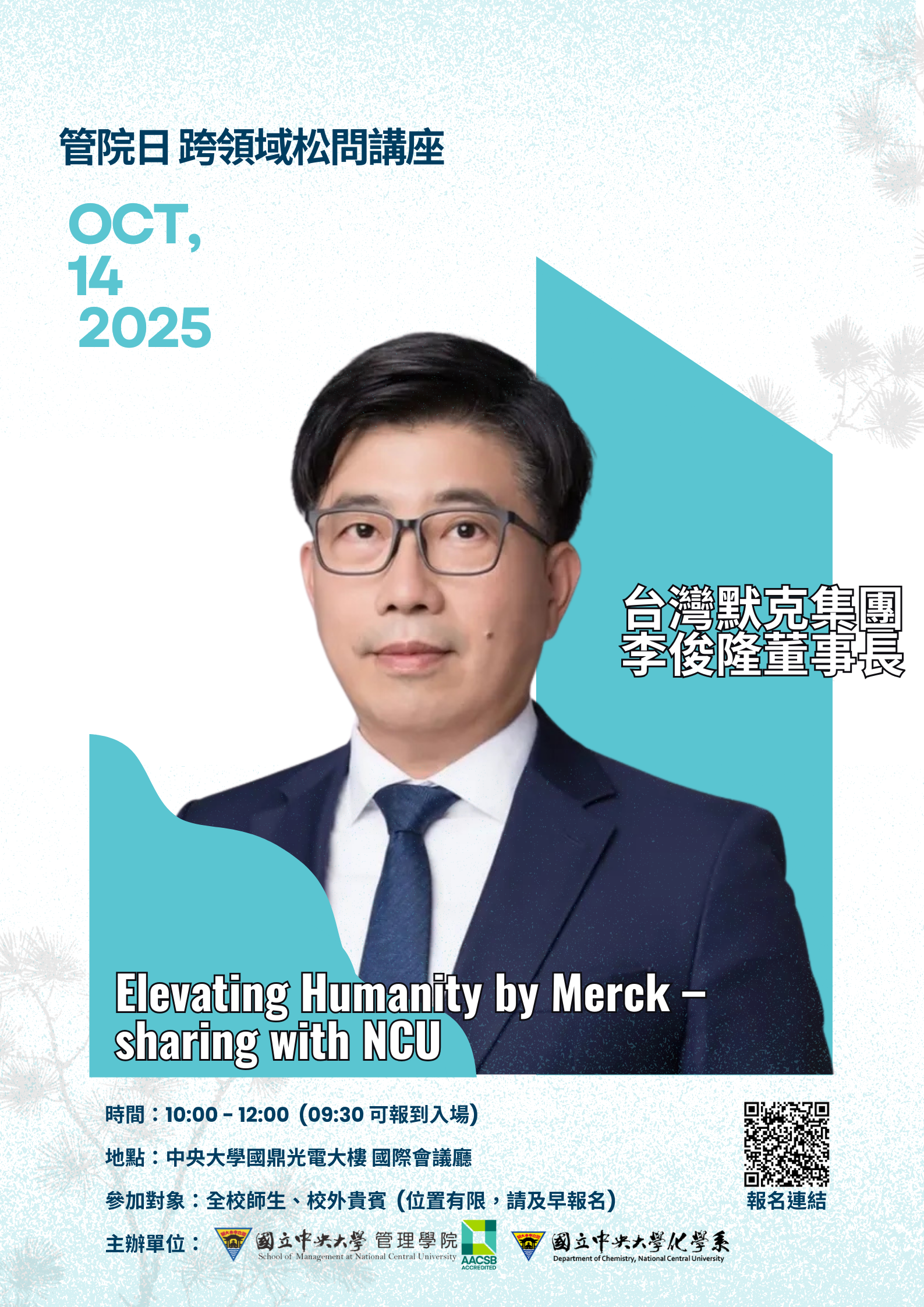 講座主題: Elevating Humanity by Merck - sharing with NCU